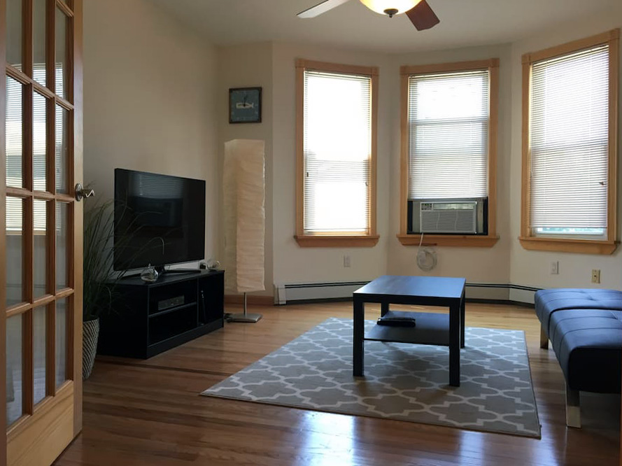 Ja, auch hier wohnt man amerikanisch. Das erste Wort in der Beschreibung auf AirBnB ist "spacious" - geräumig - und das ist alles andere als gelogen. Auf geschätzten 80m² finden sich eine riesige, gut ausgestattete Küche mitsamt Essbereich, ein geräumiges Wohnzimmer, zwei Schlafbereiche, ein Badezimmer mit Wanne sowie wie zwei begehbare Kleiderschränke. Ein 1,20m Fernseher, eine Klimaanlage und schnelles WiFi gehören in Amerika selbstverständlich zur Grundversorgung :D. Zu viert hier zu wohnen wäre nicht im geringsten ein Problem und preislich läge man dann bei ca. 25€ pro Nacht und Nase. Gut, günstig und nah an Manhatten sind also durchaus machbar!